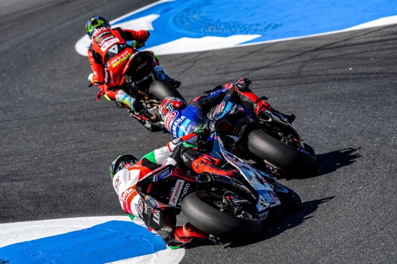 - Όταν ο Αγώνας ξεκίνησε ξανά, η διάρκειά του μειώθηκε σε 20 γύρους και οι αναβάτες της Aruba.it Racing – Ducati έκαναν την καλύτερη εκκίνηση. Ο Alvaro Bautista προηγήθηκε στους δύο πρώτους γύρους — πρώτη φορά φέτος που προηγείται σε Αγώνα — ενώ ο Nicolo Bulega προσπεράστηκε από τον Razgatlioglu στον 3ο γύρο. Ο Τούρκος αναβάτης πέρασε μπροστά στον ίδιο γύρο και κράτησε την πρωτοπορία μέχρι το τέλος.