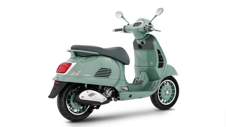 Η Vespa επιστρέφει σε αυτή την ενέργεια με τη νέα επετειακή σειρά. Το πράσινο δεν περιορίζεται μόνο στο αμάξωμα. Η Vespa διατήρησε το χρώμα και σε πολλές λεπτομέρειες που συνήθως θα τις τόνισε το χρώμιο ή θα ήταν μαύρες για να υπάρχει αντίθεση. Οι καθρέφτες, η χειρολαβή, τα περιγράμματα της μπροστινής ποδιάς, τα περιβλήματα των διακοπτών, ο βραχίονας της μπροστινής ανάρτησης και ακόμη και το μικρό κάλυμμα από το φως της πίσω πινακίδας ταιριάζουν με το σώμα. Το φινίρισμα είναι γυαλιστερό αλλά έχει μερικές σατινέ πινελιές, οπότε παρόλο που η παλέτα είναι απλή, η συνολική εμφάνιση είναι έντονη και έχει πολύ λεπτομέρεια. Η σέλα, τα μαρσπιέ και τα γκριπ χρησιμοποιούν μια ελαφρώς πιο σκούρα πράσινη απόχρωση, ώστε το σκούτερ να κρατά το συνολικό πράσινο χρώμα αλλά να χωρίζεται σε δύο τόνους.