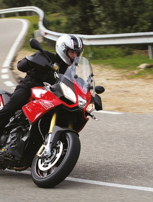 Για την απόδοση του κινητήρα είναι μάλλον αστείο να μιλήσουμε, αφού κάνει τη δουλειά του εξαιρετικά και δίνει τη δύναμή του όποτε το ζητήσει το δεξί χέρι του αναβάτη. Το ίδιο καλά τα πηγαίνει και μόλις βγεις από την εθνική και πλακωθείς σε κάνα σφιχτό στροφιλίκι. Εκεί εκτιμάς ακόμα περισσότερο την καταπληκτική απόδοση του ApriliaDynamic Damping το οποίο αρχίζει να δουλεύει υπερωρίες. Και δουλεύει τόσο καλά, που σε κάνει να ψάχνεις τον μηχανικό που ρυθμίζει τις αναρτήσεις ανάλογα με το αν βουτάς στην στροφή, αν πιέζεις την μοτοσυκλέτα, αν στύβεις το γκάζι, αν φρενάρεις... Μιλώντας για φρένα να πω ότι το σύνολο της Brembo που υπάρχει, είναι απλά επαρκές για το 1200. Θα ήθελα λίγη περισσότερη δύναμη, αλλά και πιο άμεση απόκριση, ειδικά στο μπροστινό φρένο.