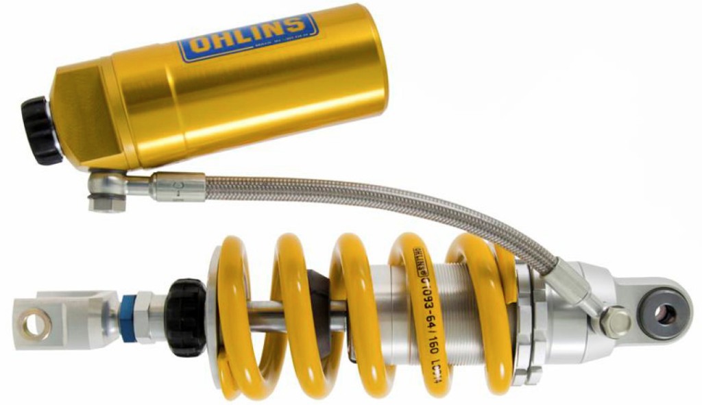 Οπίσθιο Αμορτισέρ ÖHLINS STX 46 CC με ρεζερβουάρ αζώτου και EMU χωρίς ρεζερβουάρ αζώτου: απόλυτα ρυθμιζόμενο ακόμη και ως προς το ύψος. Με τη ρυθμιζόμενη συμπίεση και επαναφορά μπορείτε να αλλάξετε τα χαρακτηριστικά απόσβεσης της μοτοσυκλέτας σας ανάλογα, αν οδηγείτε σε δρόμο ή πίστα.