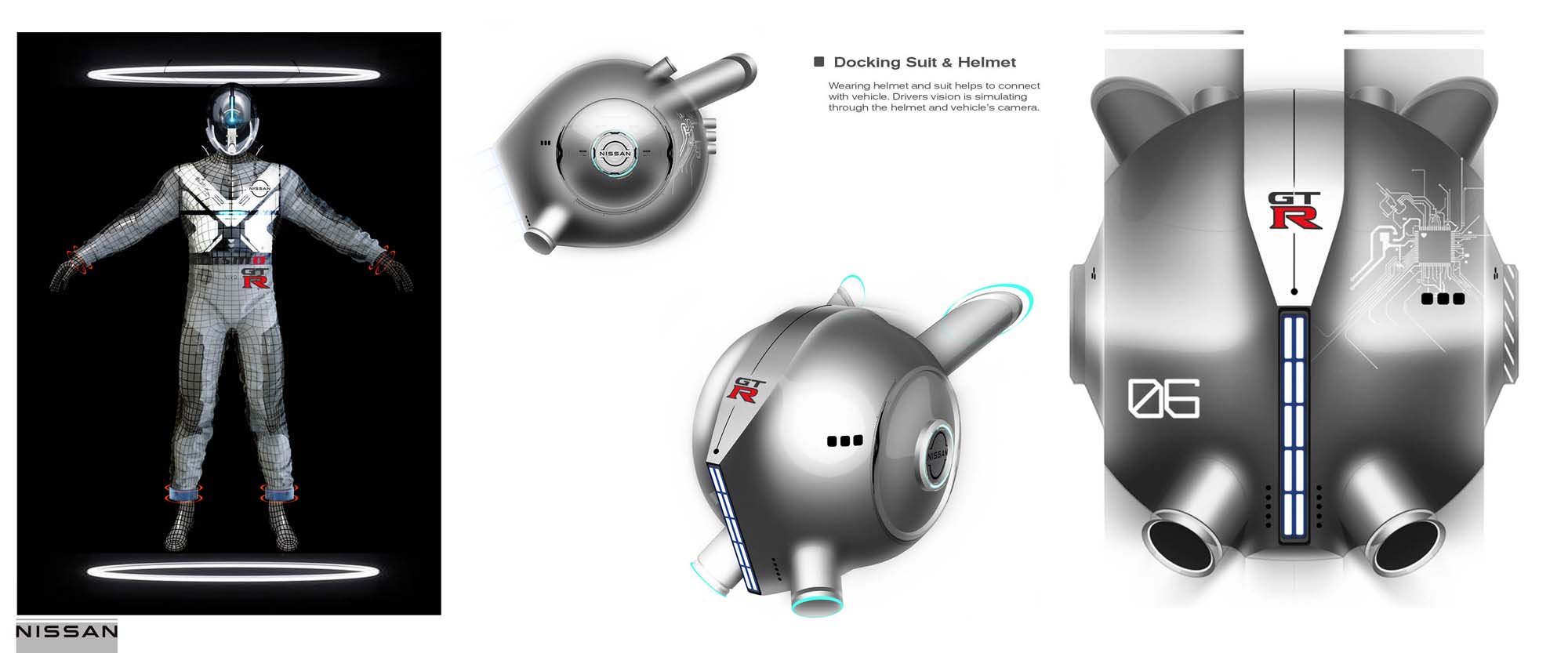 Ένα άλλο μοναδικό στοιχείο είναι το κράνος σε στυλ GT-R και το κοστούμι "docking". Το κράνος σχεδιάστηκε για να εισαχθεί σε μια υποδοχή για κάμερα μπροστινής θέασης που συνεργάζεται με VR. Ένας ειδικός πομπός μετάδοσης σημάτων από τον εγκέφαλο στην μηχανή, θα βοηθούσε τον ανθρώπινο εγκέφαλο να ενεργοποιήσει τα ψηφιακά σήματα.