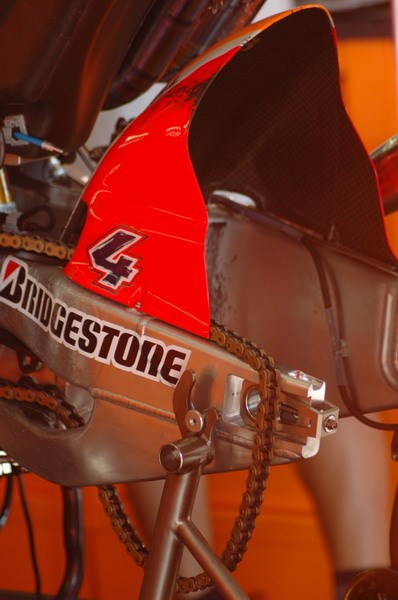 Έπειτα από το warm up της Κυριακής στη Jerez το επιτελείο του Dovizioso και του Pedrosa είχαν λύσει το πίσω μέρος των Honda για να το προετοιμάσουν εν όψη του αγώνα. Παρόλο ότι είχαν καλύψει τα ψαλίδια καταφέραμε να δούμε και να φωτογραφήσουμε το τί φοράει ο κάθε εργοστασιακός οδηγός. Το ψαλίδι του Dovizioso είναι πιο κοντό στο άνω μέρος του και δεν φέρει το έξτρα νεύρο (που φθάνει μέχρι το πλαϊνό τμήμα του ψαλιδιού) που διαθέτει το ψαλίδι του Pedrosa.