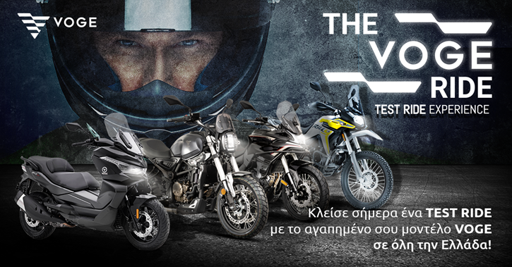 Όσοι πιστοί προσέλθετε λοιπόν, μία επίσκεψη στις ιστοσελίδες των Kymco https://kymco.gr/kymco-test-ride/ και Voge https://voge.gr/the-voge-ride/ ή ένα τηλεφώνημα στο κατάστημα της αρεσκείας σας αρκεί για να δηλώσετε συμμετοχή στην πόλη της επιλογής σας! Δίπλωμα μοτοσυκλέτας τουλάχιστον Α2 κατηγορίας, σωστό ντύσιμο, καλό κράνος και πολύ κέφι είναι αυτά που χρειάζεστε για να οδηγήσετε το όχημα που σας ενδιαφέρει.