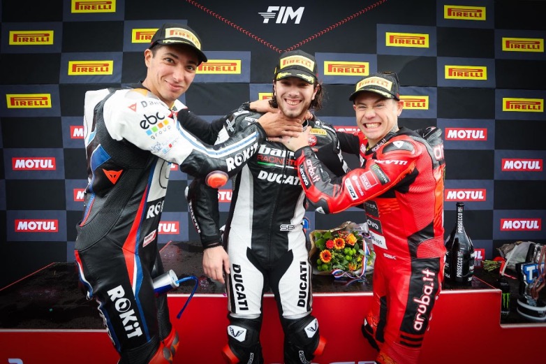 Ο Toprak Razgatlioglu (ROKiT BMW Motorrad WorldSBK Team) και ο Alvaro Bautista (Aruba.it Racing – Ducati) ανέβηκαν με τον Spinelli στο βάθρο, αλλά η κόκκινη σημαία, στον 14ο γύρο, τους κόστισε την ευκαιρία να κερδίσουν τον Αγώνα. Το δίδυμο των δύο αναβατών είχε κλείσει μία διαφορά πάνω από 20 δευτερόλεπτα λίγο πριν βρεθούν σε θέση να επιτεθούν για τη νίκη πριν από τη διακοπή.