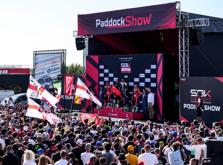 - Όταν ο Αγώνας ξεκίνησε ξανά, η διάρκειά του μειώθηκε σε 20 γύρους και οι αναβάτες της Aruba.it Racing – Ducati έκαναν την καλύτερη εκκίνηση. Ο Alvaro Bautista προηγήθηκε στους δύο πρώτους γύρους — πρώτη φορά φέτος που προηγείται σε Αγώνα — ενώ ο Nicolo Bulega προσπεράστηκε από τον Razgatlioglu στον 3ο γύρο. Ο Τούρκος αναβάτης πέρασε μπροστά στον ίδιο γύρο και κράτησε την πρωτοπορία μέχρι το τέλος.