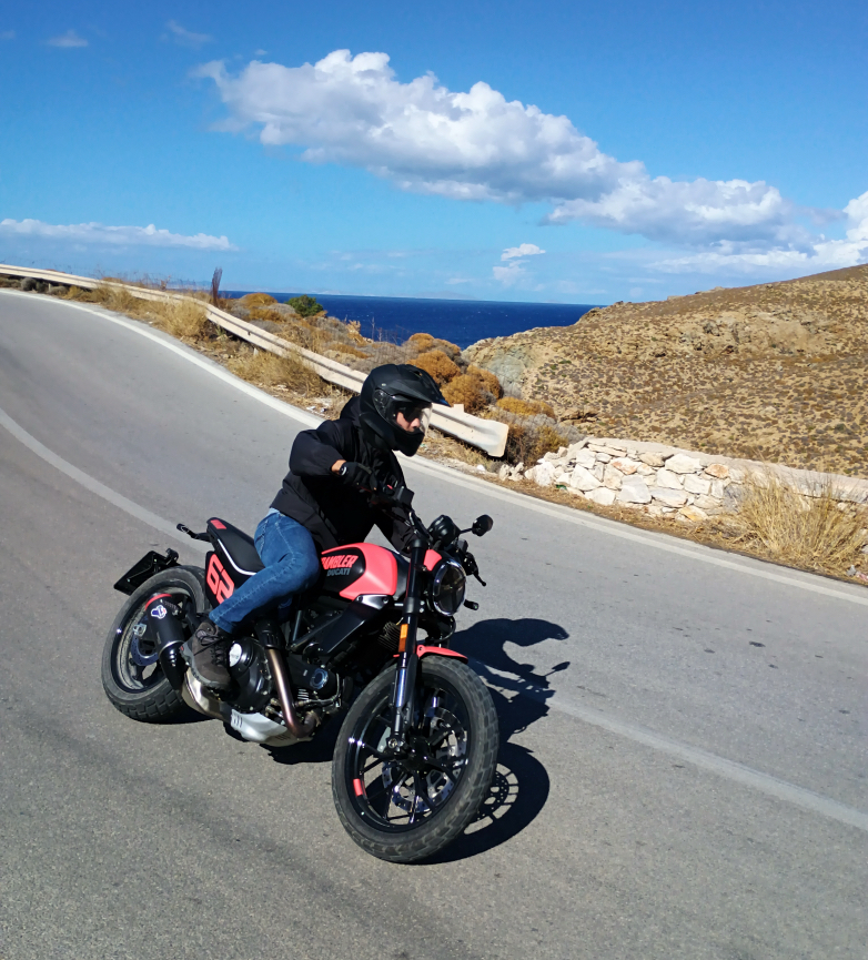 Κάποτε ανάμεσα στις συζητήσεις των παλιών μηχανόβιων υπήρχε η κατηγορία «ιδανική για νησί» και αναφερόταν σε μικρές μοτοσυκλέτες on–off, συνήθως 250 κυβ.εκ. οι οποίες ήταν το μοναδικό μέσο μετακίνησης όλο το χρόνο στην πόλη και τα κατάφερναν περίφημα την εβδομάδα των διακοπών στους στενούς και δύσκολους δρόμους των νησιών, ιδίως του Νότιου Αιγαίου. Αυτή η ανάμνηση σου έρχεται όταν βρεθείς με τη Ducati Scrambler στη Νάξο για μερικές μέρες ξένοιαστης περιήγησης στις παραλίες και τα βουνά του μεγαλύτερου σε έκταση νησιού των Κυκλάδων.