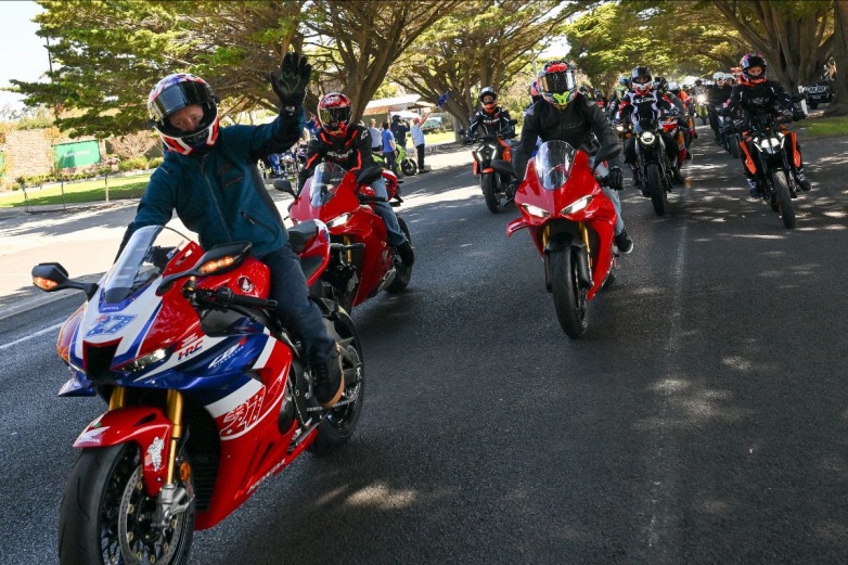 Η κλασική παρέλαση στο νησί επέστρεψε εντυπωσιακά: Stoner, Bagnaia, Miller και άλλοι αναβάτες καβάλησαν ξανά μοτοσυκλέτες στους αυστραλιανούς δρόμους, καθώς ενώθηκαν με παθιασμένους φίλους των δύο τροχών για μια ηλιόλουστη διαδρομή από το κοντινό San Remo έως το Phillip Island. Μπορείτε να απολαύσετε μερικές φωτογραφίες από την παρέλαση λίγο πιο κάτω.