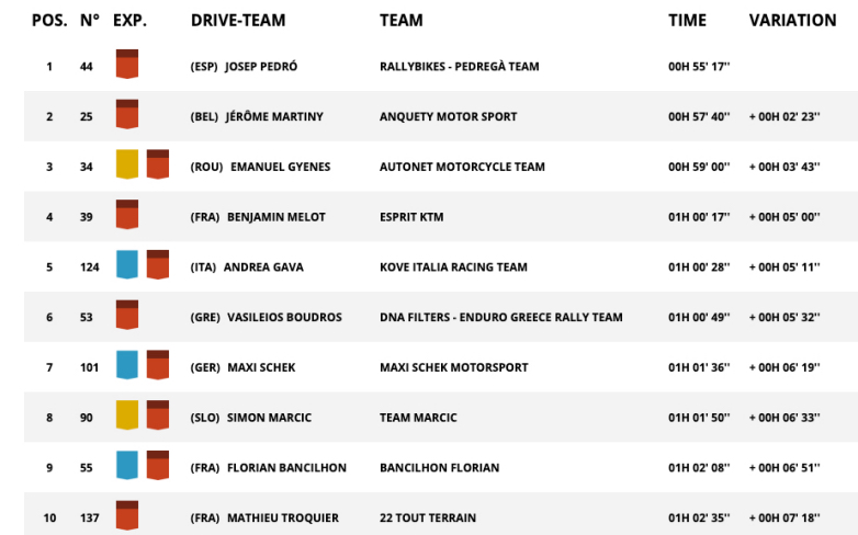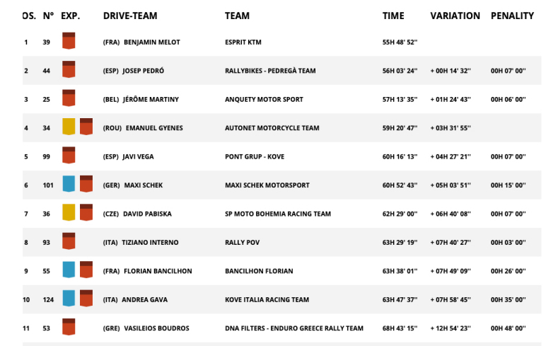 Στην κατηγορία Original by Motul, στην οποία διαγωνίζεται ο Βασίλης Μπούδρος, ο Γάλλος Benjamin Melot με ΚΤΜ έμεινε στην πρώτη θέση στη Γενική Κατάταξη της κατηγορίας, με 4η θέση στην Ειδική και τη διαφορά του απλά να μειώνεται στα 14' λεπτά από τον Josep Pedro με Husqvarna που κέρδισε την τελευταία Ειδική.