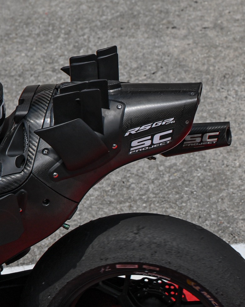 Μιλώντας γι’ αυτό, η ουρά της Aprilia προκάλεσε αρκετή συζήτηση την 2η ημέρα, με νέα αεροδυναμικά πτερύγια να στέκονται κάθετα προς τα πάνω και να κάνουν το ντεμπούτο τους στο pitlane, δοκιμαζόμενα συνεχώς. Το εργοστάσιο του Noale δοκίμαζε επίσης ένα ψαλίδι.