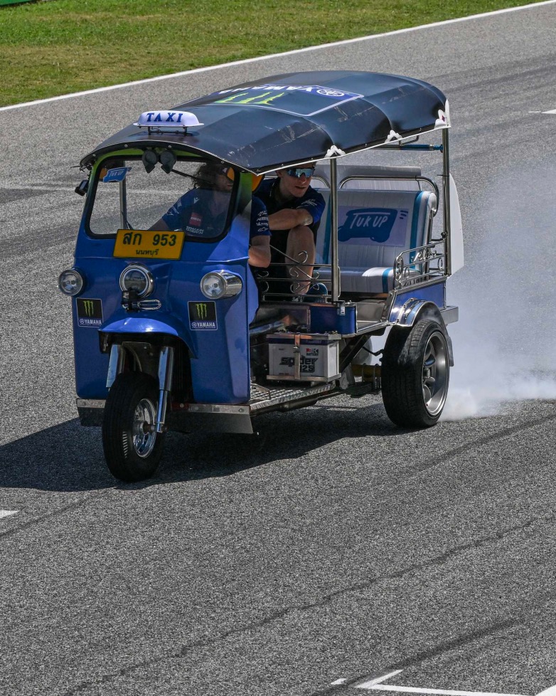 Κάθε ομάδα του MotoGP είχε από ένα Tuk-Tuk, με θέση οδηγού και ένα κάθισμα πίσω. Ένας γύρος προθέρμανσης με αλλαγή οδηγού στη Στροφή 4 τους βοήθησε να εξοικειωθούν με τη διαδικασία. Και στη συνέχεια έσβησαν τα φώτα για κάτι που τεχνικά δεν ήταν αγώνας.