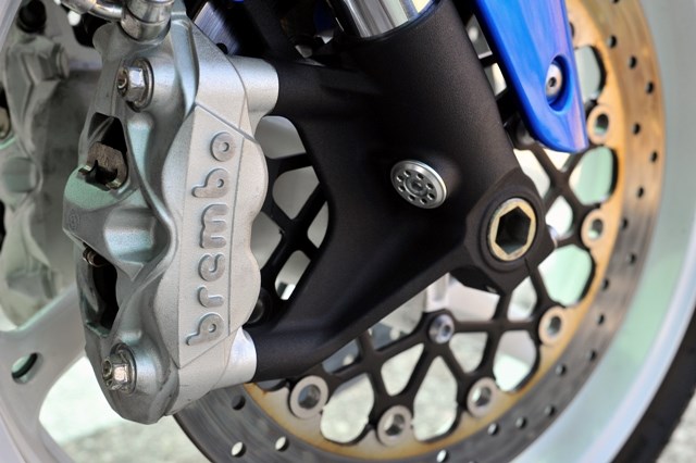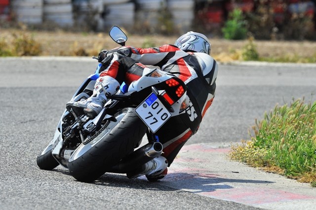 Το μπροστινό σύστημα αμέσως σου δίνει τη σιγουριά που θέλεις, αλλά και την πληροφόρηση για το τι γίνεται στην επαφή των Bridgestone BT-016 με στην άσφαλτο. Το πίσω αμορτισέρ κουράστηκε σχετικά γρήγορα και χρειάστηκε να ρυθμιστεί οριακά σφιγμένο ως προς την συμπίεση, χωρίς τελικά να δώσει ανάλογη αίσθηση με το πολύ καλό μπροστινό. Ένα άλλο πρόβλημα που αντιμετωπίσαμε είναι η συμπεριφορά των άψογων στο δρόμο ΒΤ-016, που στην πίστα – λόγω κορώνας – δεν βοηθούσαν στο άμεσο πλάγιασμα.