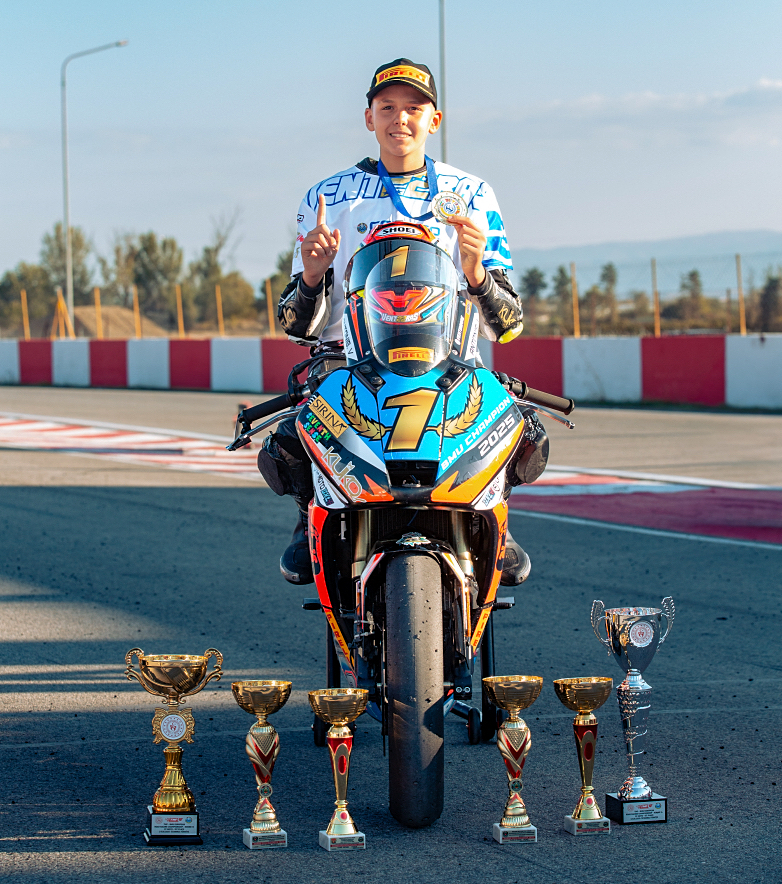 Πρωταθλητής Βαλκανικού Πρωταθλήματος BMU 2025 στην κατηγορία CFMOTO300 αναδείχθηκε ο 13χρονος Αντώνης Βεντούρας, ολοκληρώνοντας με τον πιο εντυπωσιακό τρόπο μια δύσκολη αλλά γεμάτη πάθος και δύναμη χρονιά.