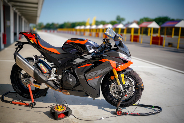 Η Aprilia RSV4 Factory 2025 επιβεβαιώνει τον μύθο της ως μία από τις κορυφαίες superbike για χρήση σε πίστα και Track Days. Στην πίστα των Σερρών έδειξε από τα πρώτα κιόλας μέτρα γιατί θεωρείται σημείο αναφοράς. Ο V4 κινητήρας των 1.099 κ.εκ. αποδίδει 220 ίππους και 127 Nm, προσφέροντας εκρηκτική αλλά ταυτόχρονα γραμμική απόδοση σε όλο το φάσμα στροφών. Με βάρος μόλις 204 κιλά με υγρά, η RSV4 Factory συνδυάζει εντυπωσιακή επιτάχυνση με ευελιξία και σταθερότητα.