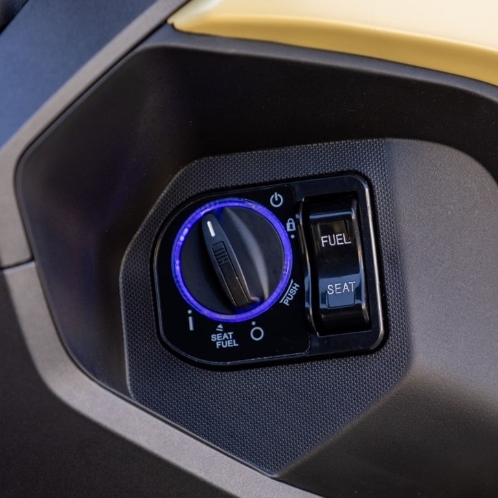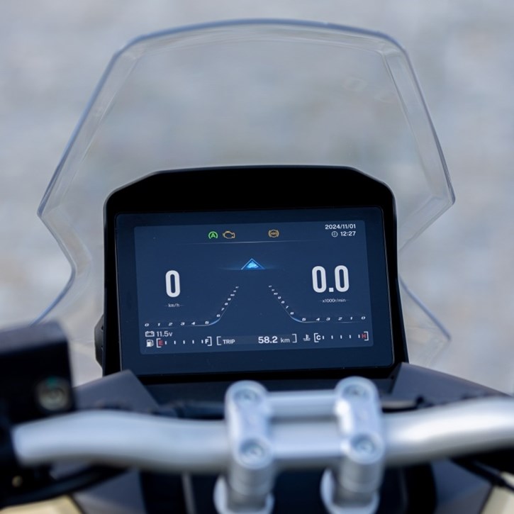 Στον βασικό εξοπλισμό διαθέτει, TFT 7’’, Fat bar τιμόνι, ρυθμιζόμενη ζελατίνα, keyless χειρισμός (εκκίνηση, άνοιγμα σέλας και ρεζερβουάρ), χώρος αποθήκευσης κάτω από τη σέλα που χωρά full-face κράνος, καθώς και παροχή USB.