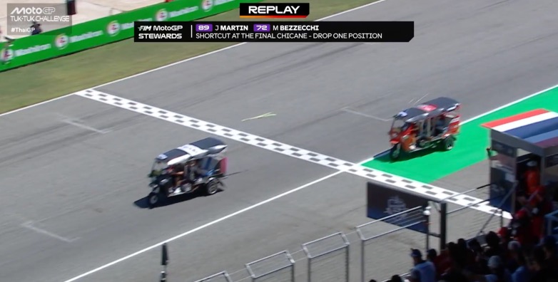 Κάθε ομάδα του MotoGP είχε από ένα Tuk-Tuk, με θέση οδηγού και ένα κάθισμα πίσω. Ένας γύρος προθέρμανσης με αλλαγή οδηγού στη Στροφή 4 τους βοήθησε να εξοικειωθούν με τη διαδικασία. Και στη συνέχεια έσβησαν τα φώτα για κάτι που τεχνικά δεν ήταν αγώνας.
