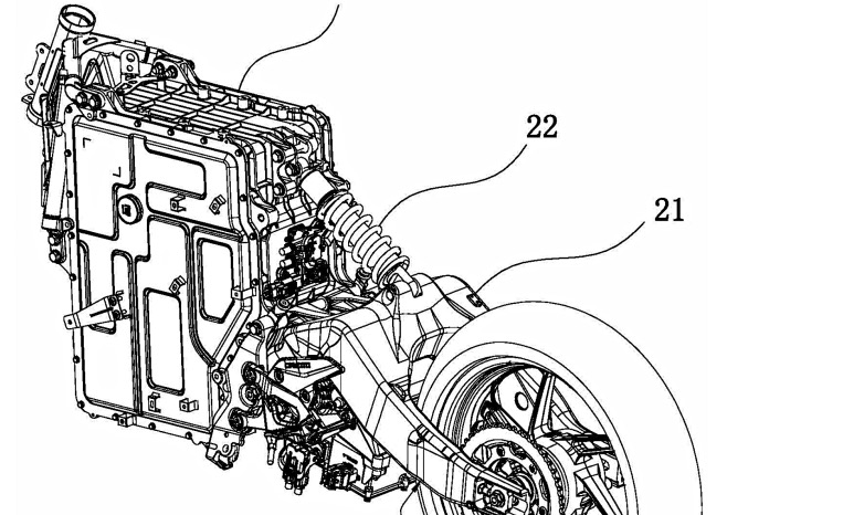 Η αίτηση πατέντας της CFMoto στοχεύει στην προστασία συγκεκριμένων λεπτομερειών της διάταξης, ιδιαίτερα της πάνω βάσης του πίσω αμορτισέρ, αν και το κατά πόσο είναι αρκετά μοναδική για να εξασφαλίσει πατενταρισμένη προστασία είναι άλλο ζήτημα. Το έγγραφο περιλαμβάνει εικόνες με ασυνήθιστα υψηλό επίπεδο λεπτομέρειας, όπως για παράδειγμα βάσεις στήριξης για εξαρτήματα που δεν φαίνονται στο πίσω υποπλαίσιο, καθώς και ενισχυτικές δομές που είναι χυτές στο εξωτερικό χείλος του περιβλήματος της μπαταρίας και στα αλουμινένια καλύμματα που βιδώνονται σε κάθε πλευρά.