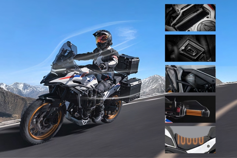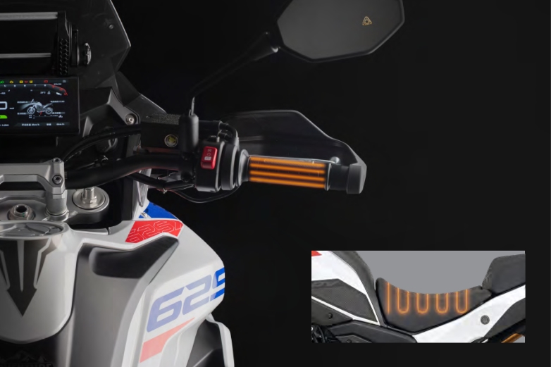 Στον εξοπλισμό περιλαμβάνονται θερμαινόμενα γκριπ, θερμαινόμενη σέλα αναβάτη, θύρα USB γρήγορης φόρτισης και παροχή 12V.