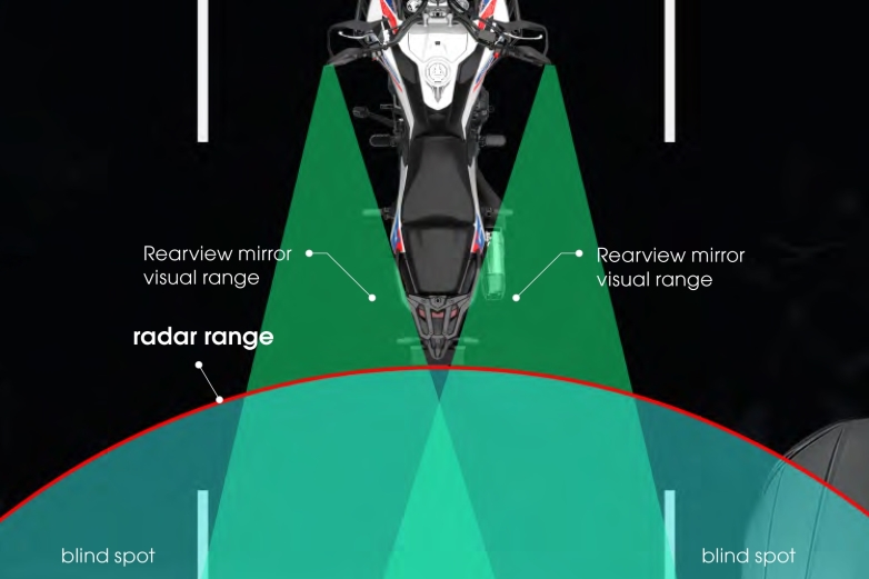 Το radar υποστηρίζει τον αναβάτη με λειτουργίες όπως ειδοποίηση τυφλού σημείου και προειδοποιήσεις για οχήματα που πλησιάζουν από πίσω, στοιχείο ιδιαίτερα χρήσιμο σε γρήγορες διαδρομές και ταξίδι.