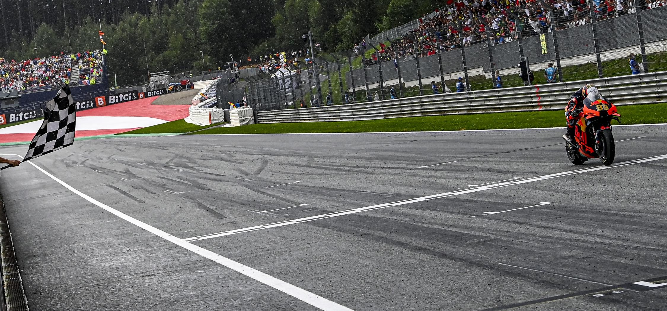 Όμως η μέρα άνηκε στον Brad Binder. Ακροβατώντας πραγματικά στις χειρότερες συνθήκες, ο Νοτιοαφρικανός αναβάτης κατάφερε να φτάσει πρώτος στην γραμμή του τερματισμού, να χαρίσει στην ΚΤΜ την νίκη στην έδρα της και στον εαυτό του την δεύτερή του νίκη. Και μόνο το γεγονός ότι ο Binder κατάφερε να οδηγήσει σε αυτές τις συνθήκες με σλικ ελαστικά, πόσω μάλλον να κερδίσει, είναι ένα εκπληκτικό γεγονός.