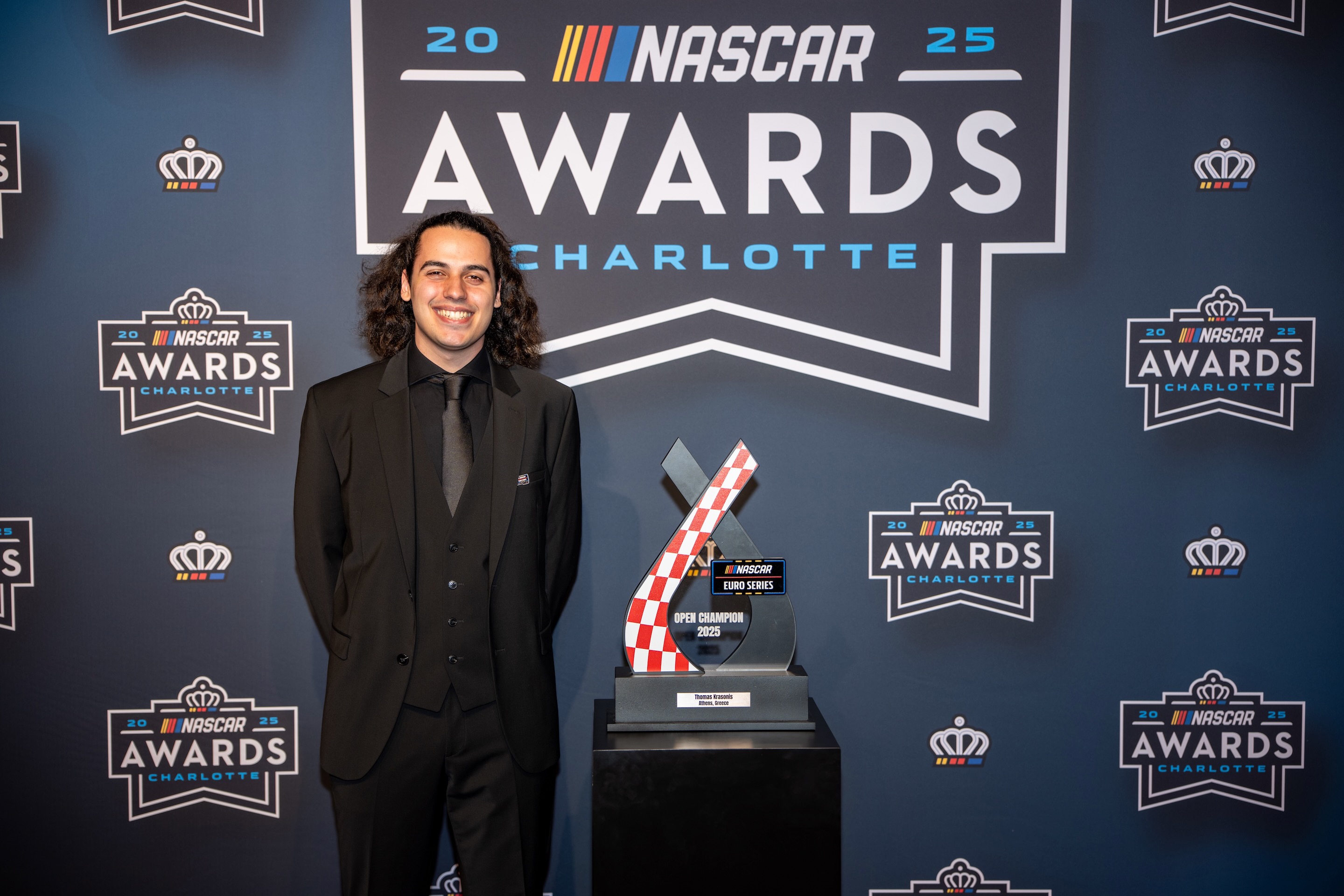 Ο 23άχρονος οδηγός, ο οποίος είναι ο πρώτος Έλληνας που κατακτά τον τίτλο σε ευρωπαϊκό Πρωτάθλημα μηχανοκίνητων σπορ, συνοδεύτηκε στις Ηνωμένες Πολιτείες από τον πατέρα του, Άγγελο και είχε την ευκαιρία να βιώσει αυτή τη μοναδική εμπειρία των NASCAR Awards.