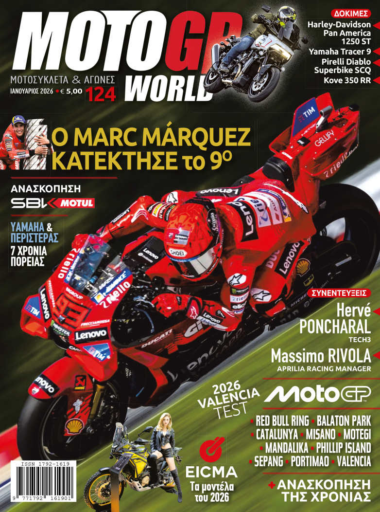 Πέρα από τις Ανασκοπήσεις για MotoGP και WorldSBK, έχουμε δύο συνεντεύξεις με εξέχουσες φυσιογνωμίες του Paddock του Παγκοσμίου Πρωταθλήματος Ταχύτητας. Με τον Herve Poncaral που αποχωρίστηκε την ιδιοκτησία της Ομάδας Tech3 και με τον Massimo Rivola τον Γενικό Αγωνιστικό Διευθυντή της Aprilia, που εκτός από το φοβερά πετυχημένο τέλος της χρονιάς για το Ιταλικό εργοστάσιο, μας μιλάει και για τον Έλληνα οδηγό που θα αγωνίζεται με Aprilia το 2026 στη νέα κατηγορία WorldSPB (Sportbike) που θα γίνεται μαζί με τα SBK. Ο Γιάννης Περιστεράς λοιπόν θα μας κάνει υπερήφανους σε επίπεδο Παγκοσμίου Πρωταθλήματος και για την μέχρι τώρα 7χρονη αγωνισττική του πορεία με την Yamaha υπάρχει το σχετικό αφιέρωμα.