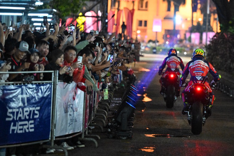 Ομάδα με ομάδα, οι αναβάτες έκαναν δύο γύρους επίδειξης – προσθέτοντας και λίγο θέαμα – καθ’ οδόν προς τη σκηνή για να χαιρετήσουν το πλήθος. Το σόου ξεκίνησε στις 19:30 και οι πρώτες μοτοσυκλέτες βγήκαν στους δρόμους που ήταν γεμάτοι από φιλάθλους από τις 20:00. Αφού όλοι οι ήρωες του grid του 2026 έκαναν την εμφάνισή τους, το βραβευμένο συγκρότημα The Script ανέβηκε στη σκηνή – πλαισιώνοντας εμφανίσεις από τον DJ PAWSA και το Μαλαισιανό συγκρότημα DOLLA. Το κλείσιμο της βραδιάς βρήκε τους αναβάτες να ανεβαίνουν στη σκηνή μαζί με τους The Script για την τελευταία ομαδική φωτογραφία, ολοκληρώνοντας την εκδήλωση με στυλ.