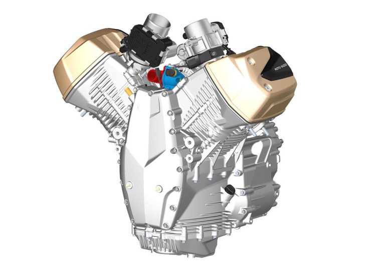 Ο κινητήρας VA-10 της Moto Guzzi παρουσιάζει ορθολογική αρχιτεκτονική, διατηρώντας το χαρακτηριστικό γνώρισμα των V κινητήρων της Ιταλικής μάρκας, δηλαδή την εγκάρσια διάταξη των κυλίνδρων. Το κύριο κάρτερ, χωρισμένο σε οριζόντιο επίπεδο, αποτελούσε σημαντική ανάγκη ώστε να διασφαλιστεί πιο αποδοτική παραγωγική διαδικασία, βασισμένη σε χυτά υπό πίεση εξαρτήματα αντί για χυτεύσεις σε άμμο - λύση που επιλέχθηκε και για τον πιο πρόσφατο κινητήρα της εταιρείας.