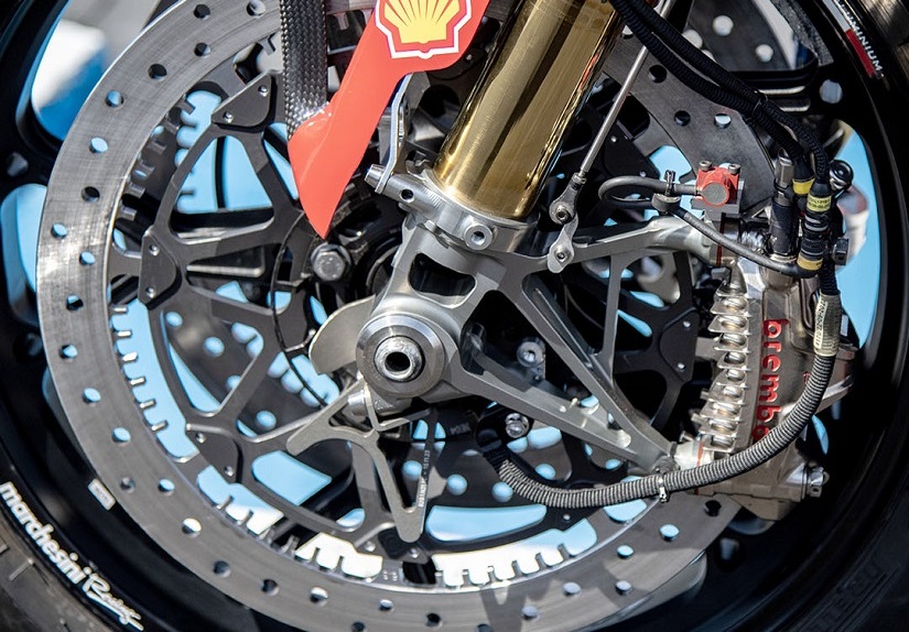 Για το Παγκόσμιο Πρωτάθλημα Superbike, η Brembo παρέχει στις ομάδες ατσάλινους δίσκους (οι δίσκοι από ανθρακονήματα απαγορεύονται από τους κανονισμούς) με διάμετρο 336 mm και 338,5 mm. Υπάρχουν σημαντικές διαφορές όσον αφορά το πάχος, με τιμές 6,5 mm και 7,1 mm για τους μικρότερους δίσκους και 6,2 mm, 6,8 mm και 7,4 mm για τους μεγαλύτερους δίσκους. Η επιλογή ποικίλλει ανάλογα με την πίστα, εκτός από μία ομάδα που, για να προσαρμοστεί καλύτερα στις ηλεκτρονικές και μηχανικές ιδιότητες πέδησης της μοτοσικλέτας της, χρησιμοποιεί δίσκους υψηλής μάζας, δηλαδή δίσκους υψηλής ζώνης, για ολόκληρο το πρωτάθλημα.
