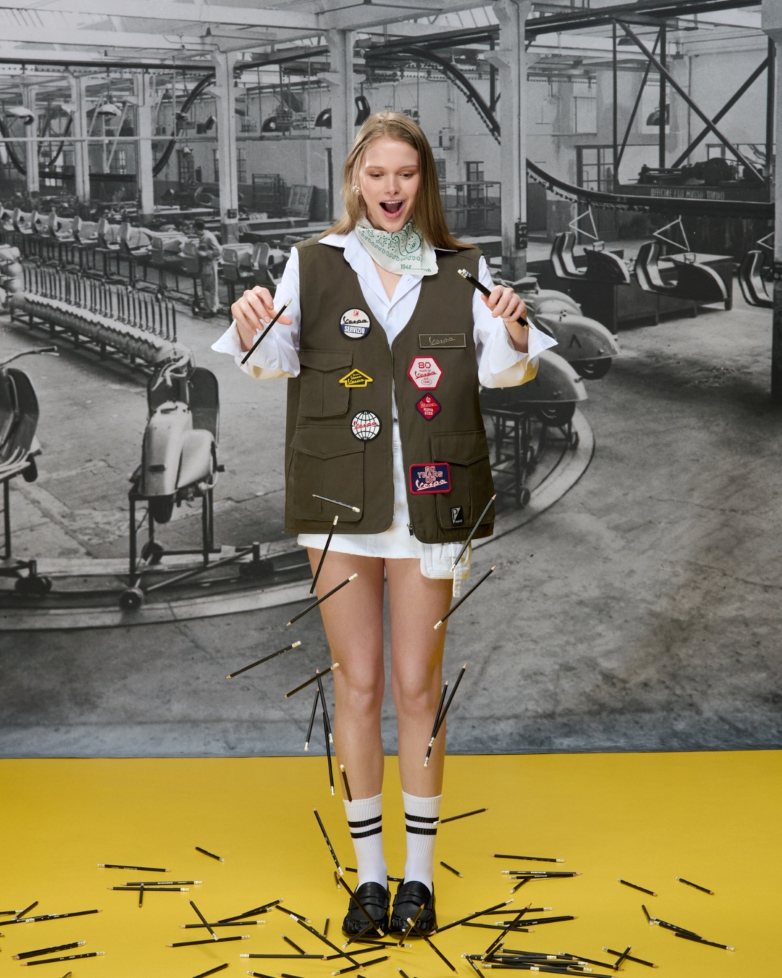 Η συλλογή περιλαμβάνει κομμάτια που αντανακλούν το σύμπαν της Vespa: varsity τζάκετ με εορταστικά γραφικά και ιστορικές αναφορές, field τζάκετ και utility γιλέκο από βαμβακερή γκαμπαρντίνα με αναμνηστική στάμπα για την 80ή επέτειο, φούτερ και t-shirt με στάμπες "80 Years of Vespa – Est. 1946" και tailored πόλο μπλούζες.
